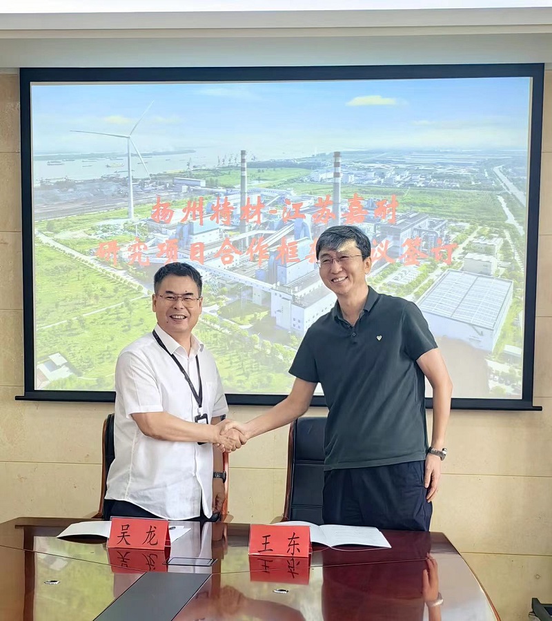 揚(yáng)州特材與嘉耐股份進(jìn)行研究項(xiàng)目合作簽約儀式