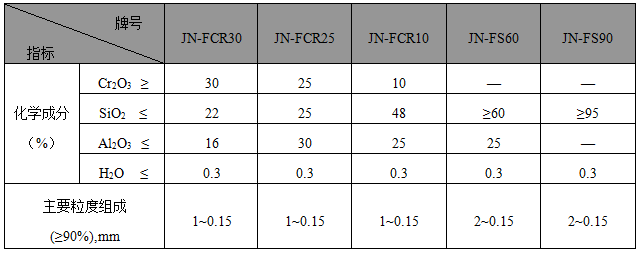 ·JN系列鋼包引流砂主要理化指標(biāo)·