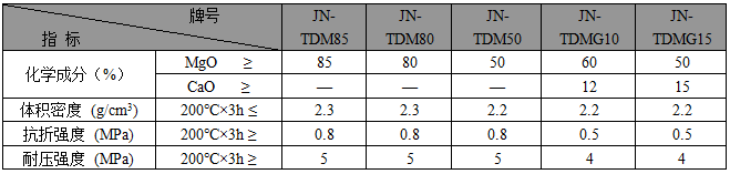 ·JN系列中間包干式振動料主要理化指標(biāo)·